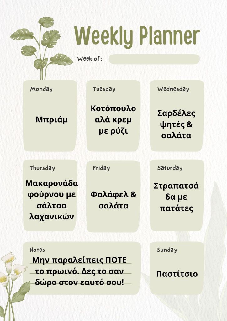 Έτοιμο το μενού της επόμενης εβδομάδας. Τι λες, θα τι ακολουθήσεις;