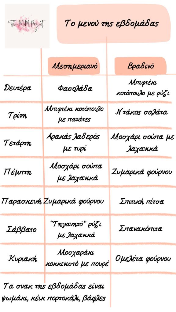 Αποθήκευσε την εικόνα στο κινητό σου, για να έχεις μαζί σου το μενού της εβδομάδας.